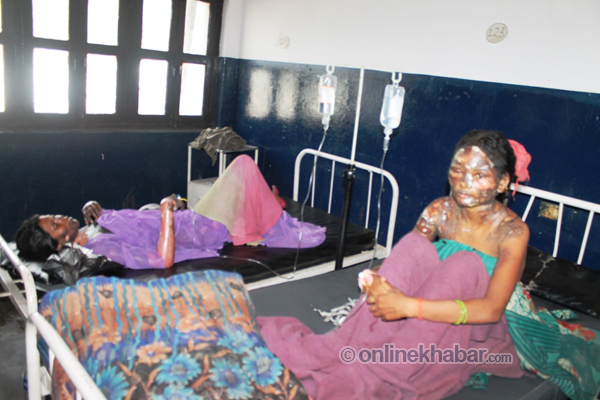 यसैगरी नेपालगन्जको भुजईगाउँकी हेमकुमारी पनि आगोमा जलेकी छन् । घाईते हेमकुमारीको शरिरको ९० प्रतिशत भाग जलेको छ ।